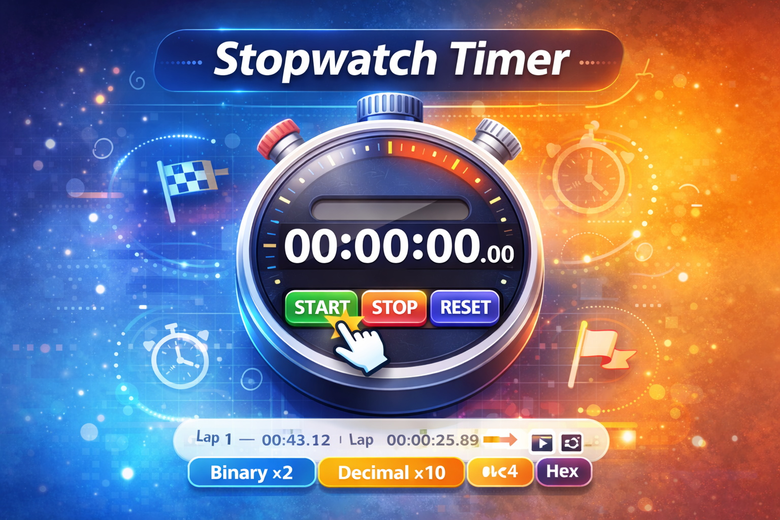 This dual-purpose time tool combines a precision stopwatch with a countdown timer in a single interface. The stopwatch records lap times for sports and productivity tracking, while the countdown timer features an animated progress ring and an alarm notification when time is up.